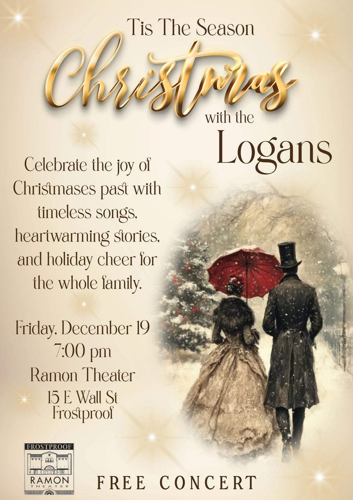 Step into the magic of Christmases past at the historical Ramon Teater as the Logans bring you a heartwarming evening of timeless holiday music, nostalgic stories, and festive cheer the whole family will love!