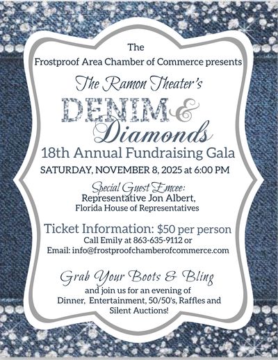 Dust off those boots, throw on your best sparkle, and join us for an unforgettable evening as the Frostproof Chamber of Commerce presents the Ramon Theater's 18th Annual Gala!